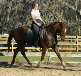 Dressage her riding discipline passion, although thoroughly enjoys trail riding, western and jumping. A goal: "to take my horse on the beach and ride in for a swim."